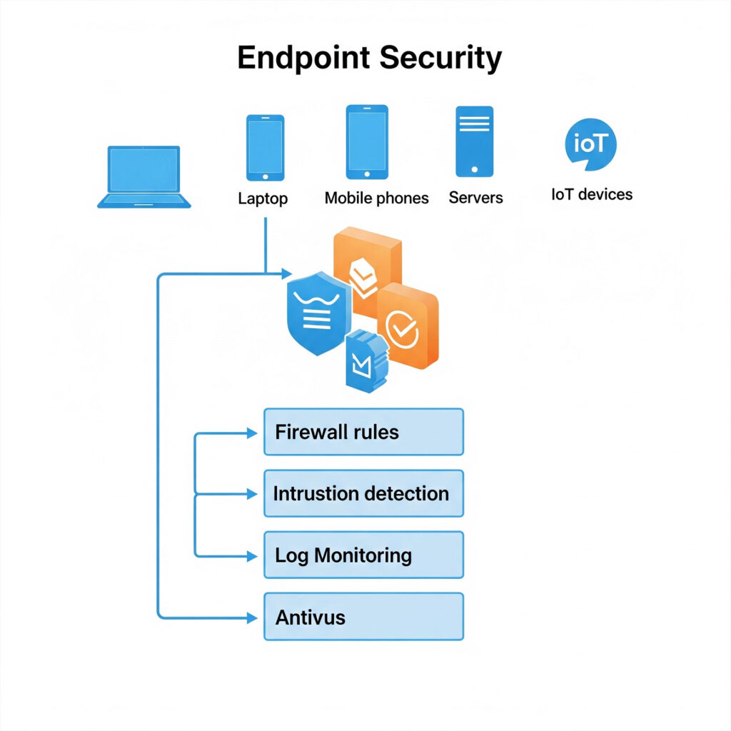 UTCYBER Endpoint Security service provides comprehensive protection for all your devices, including laptops, desktops, servers, mobile phones, and IoT devices, from a wide range of cyber threats. Endpoints are often the primary target for attackers, making robust endpoint security a critical component of your overall cybersecurity strategy. Our service includes: